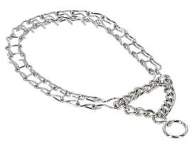 Dławiki oraz obroże metalowe zaciskowe dla psa są kolejnymi akcesoriami do szkolenia i treningu psa. Obroże zaciskowe dla psa to metalowe łańcuszki pojedyncze, podwójne albo potrójne. Mają inny mechanizm działania niż kolczatki. Podczas ciągnięcia za smycz obroża zaciska się na szyi psa. Sprawdzić się może u psów ciągnących i wyrywających się z obroży. Zasada stosowania obróżek zaciskowych jest podobna do zasad używania kolczatek. Stosujemy obróżki metalowe zaciskowe jako dodatek do komend i nagród, wspomagających naukę chodzenia psa na smyczy.
