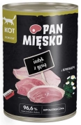 Mokra karma dla psów Pan Mięsko to produkty najwyższej jakości przygotowane z takich mięs jak: indyk, jeleń, jagnięcina czy dzik. Dla smakoszy rybnych smaków czeka między innymi dorsz.