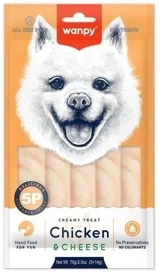 Marka Wanpy oferuje przysmaki w formie kostek do gryzienia, które w składzie zawierają węglan wapnia, wzmacniający kości psiaka. Część przysmaków zawiera nienasycone kwasy tłuszczowe Omega 3 i Omega 6, wspierające układ nerwowy i pokarmowy psa.