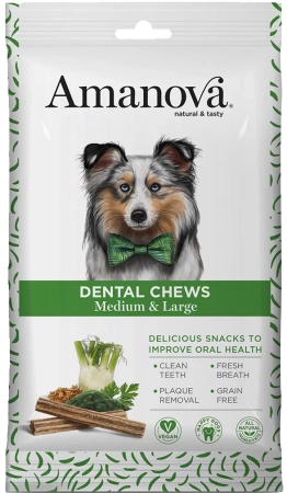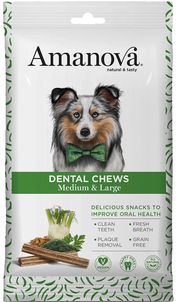 • Amanova Dental Przysmak dla Psa M i L Wegański 100g to dentystyczna przekąska dla Twojego pupila, z lukrecją i fenkułem.