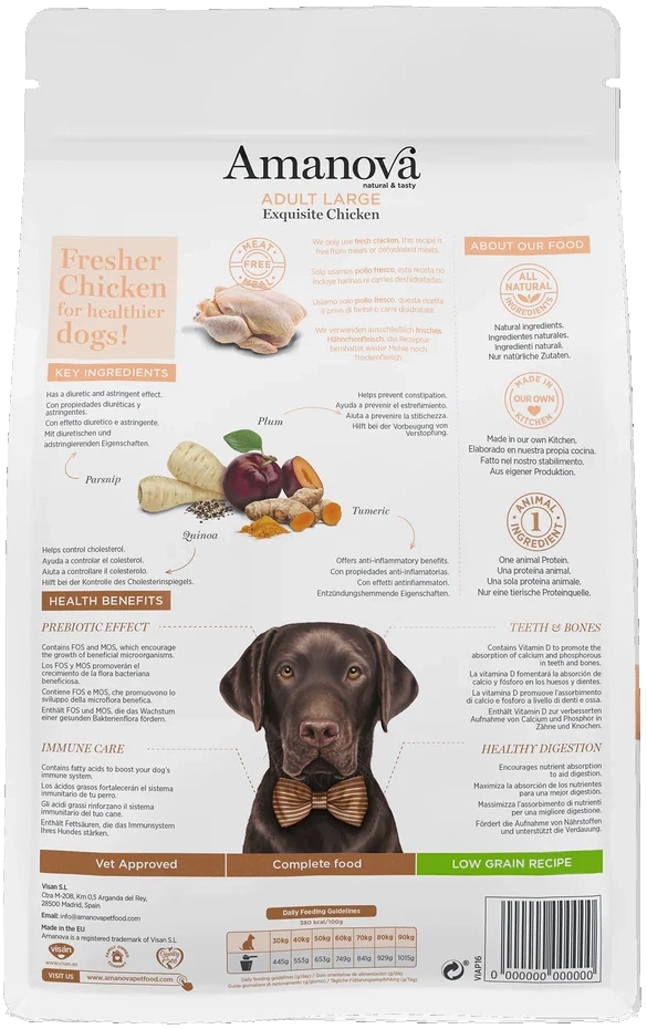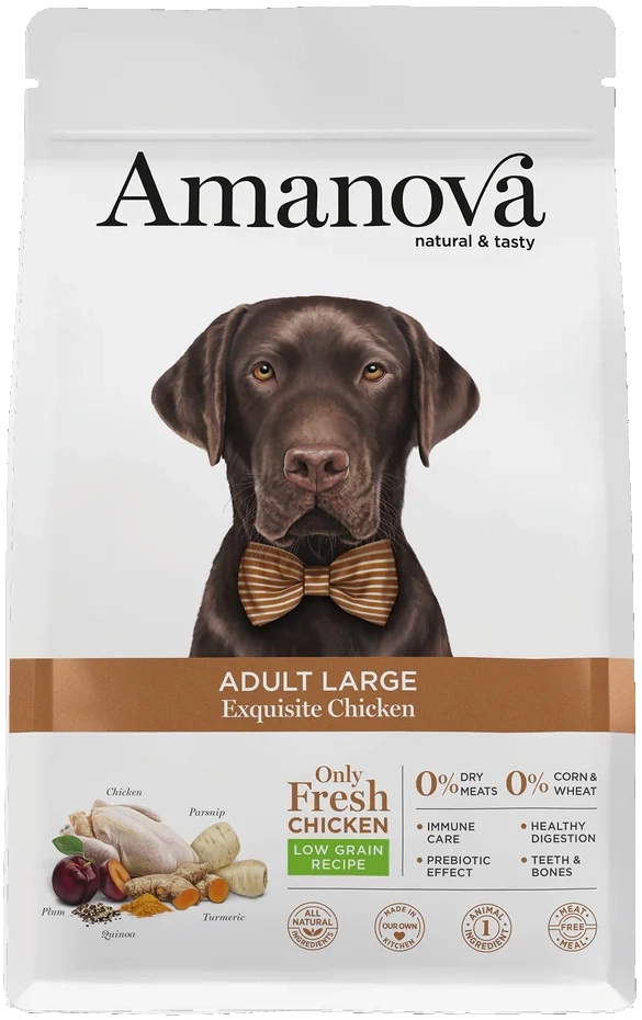 Karma dla psa ze świeżym kurczakiem Amanova Dog Adult Large Exquisite została stworzona z myślą o potrzebach psów ras duzych.