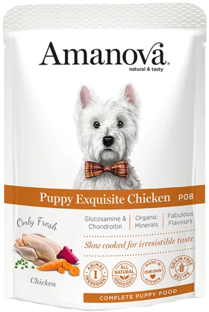 - Amanova Exquisite Karma Dla Szczeniąt Kurczak 100g to wyjątkowe danie dla Twojego psa o bogatym składzie. Bez dodatku zbóż.