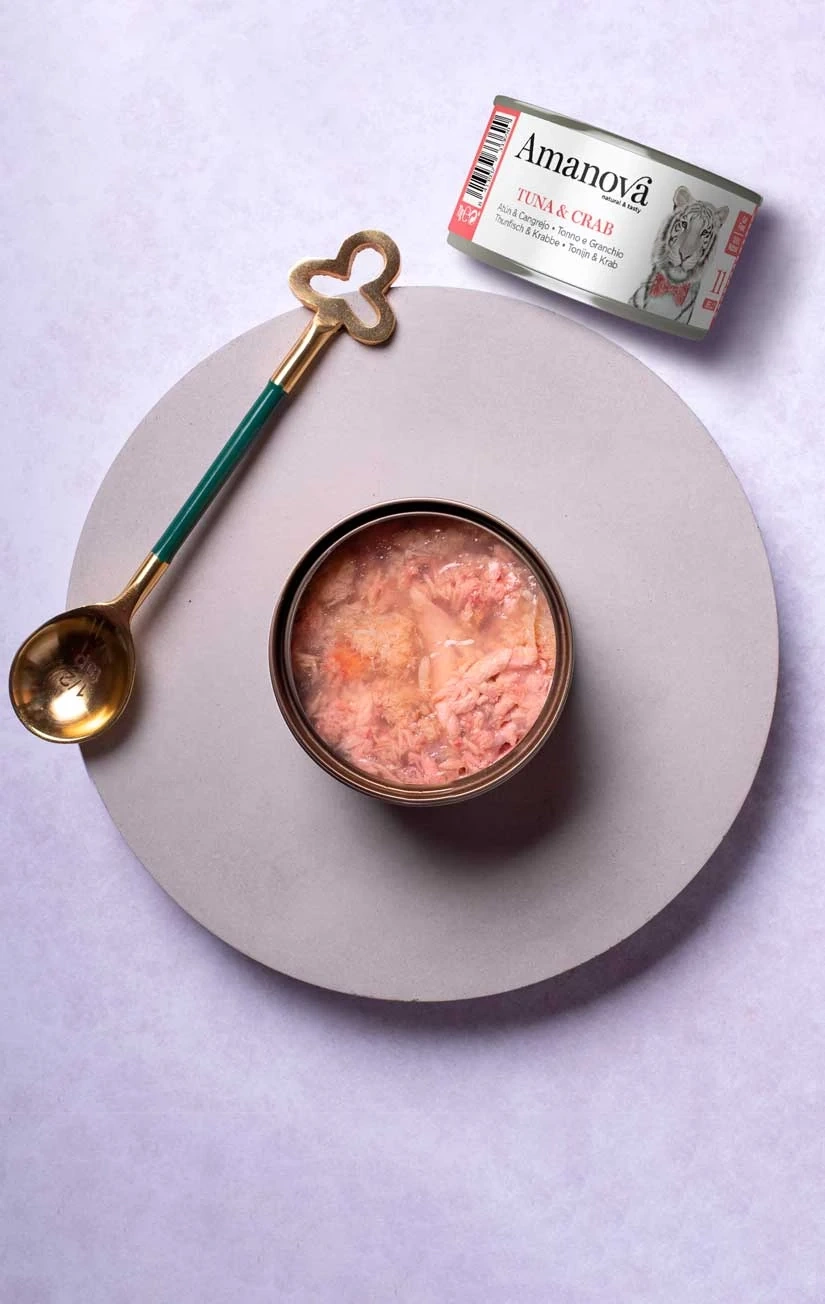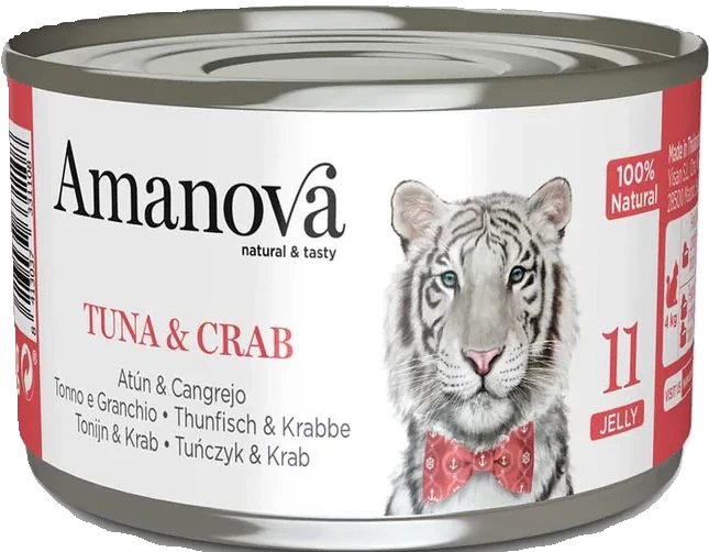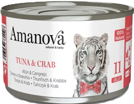 Mokra karma dla kota Amanova z soczystym tuńczykiem oraz krabem w galaretce.