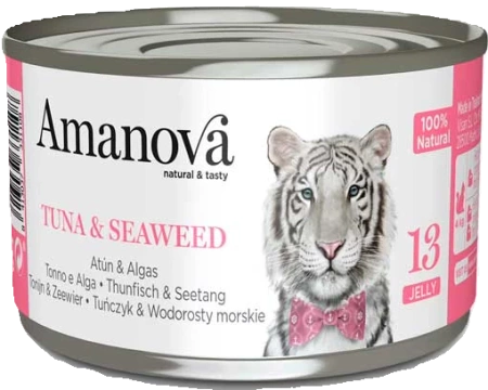 - Amanova Karma dla Kota Tuńczyk Wodorosty Galaretka 70g to zdrowa przekąska dla Twojego kota z wysoką zawartością mięsa i mega prostym składem.
