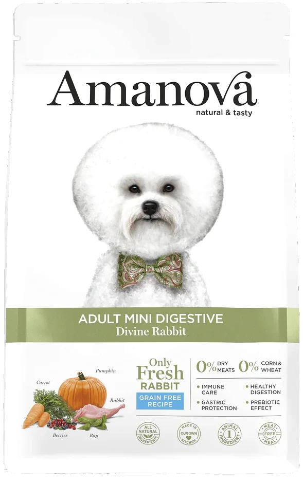 Amanova Mini Digestive Karma dla Psa Królik 2kg to pełnoporcjowa karma dla psów dorosłych, ras małych i miniaturowych.