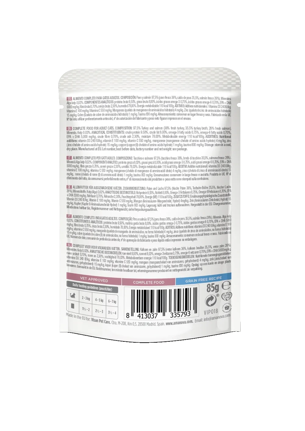 Amanova Tasty Karma dla Kota Łosoś Indyk 85g zdrowa i bogata w świeże mięso pełnoporcjowa karma dla dorosłych kotów.