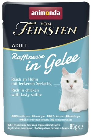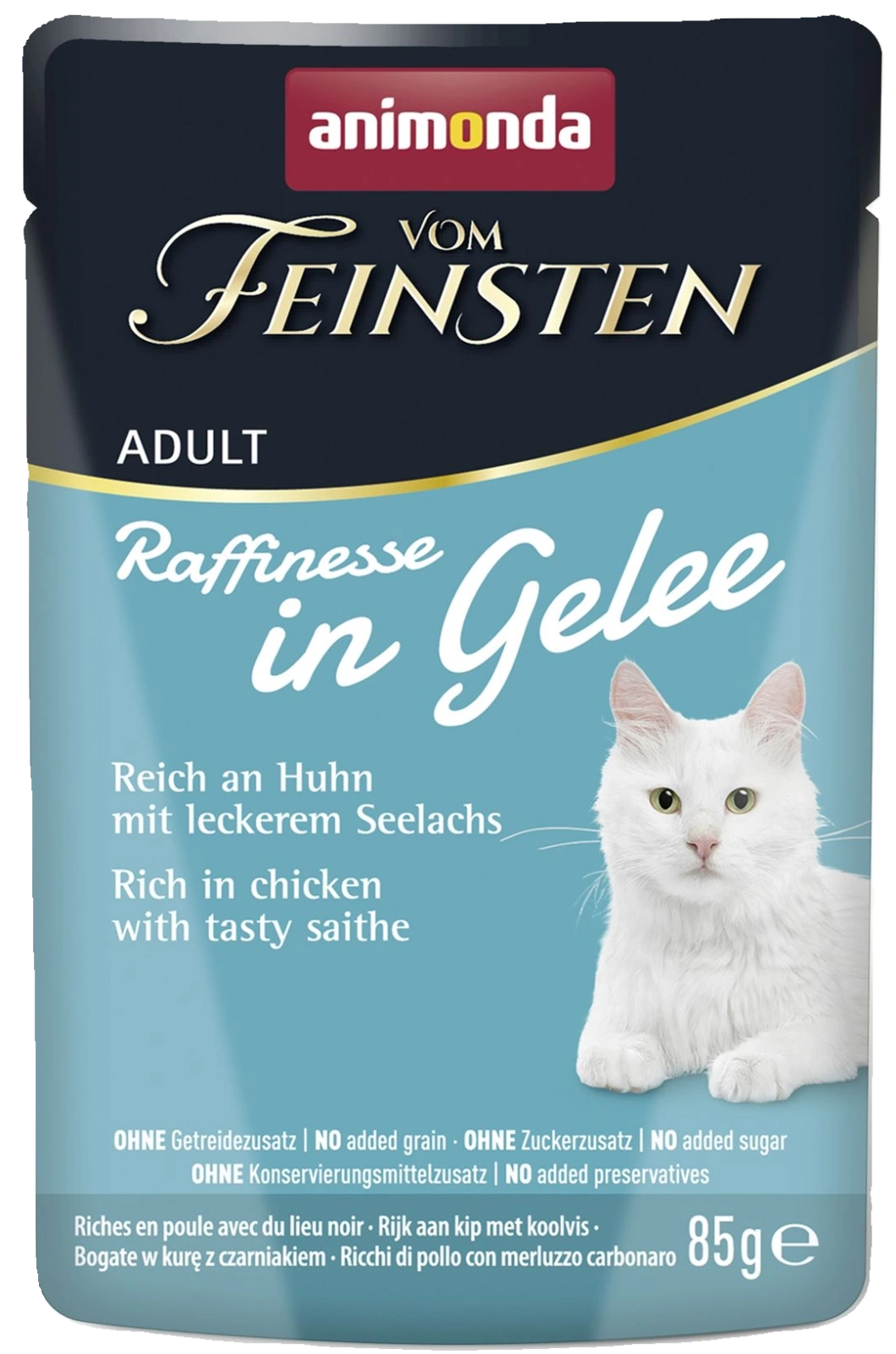 Mokra karma dla kota Animonda Vom Feinsten Raffinesse to smakowite mięso kurczaka oraz czarniaka, w aromatycznej galaretce.