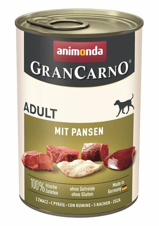 • Animonda Pies 400g Grancarno Żwacze to pożywna karma mokra dla psów.