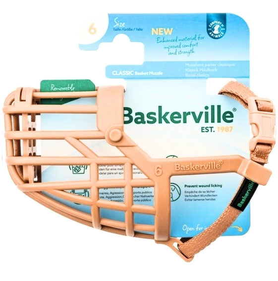 • Baskerville Classic Kaganiec Dla Psa 6 Beżowy 26cm to kaganiec wykonany z trwałego i elastycznego tworzywa, w kolorze beżowym. Dostępny w kilku rozmiarach.