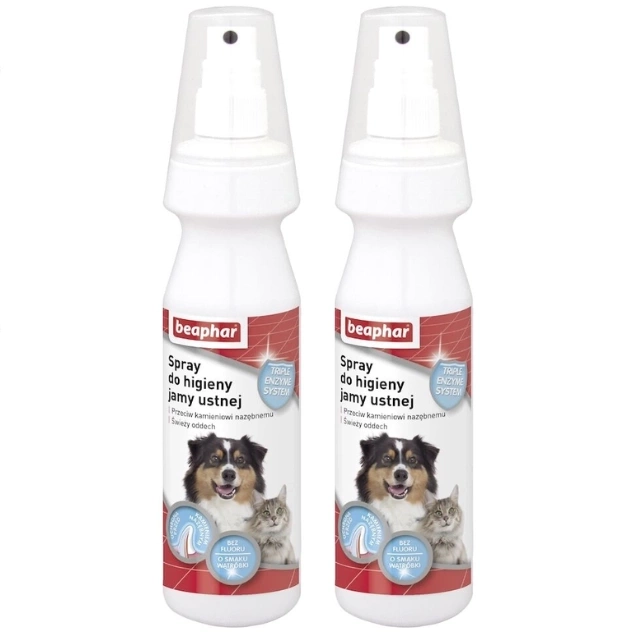 Beaphar Spray do higieny jamy ustnej dla psa i kota 2x150ml to preparat higieniczny dla zwierząt domowych.