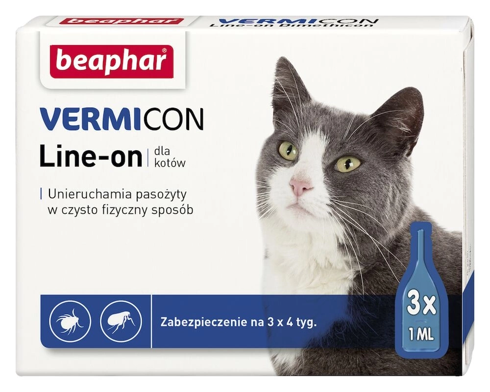 - Beaphar Vermicon Krople Dla Kota Kleszcze Pchły 2x3szt to skuteczny środek przeciwko ektopasożytom, bezpieczny dla Twojego kota.