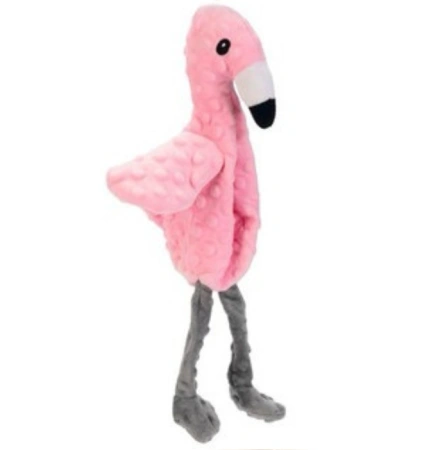 Różowy flaming Beeztees nie posiada piszczałki - idealna zabawka dla zwierzaków lękowych, mocno pobudzonych lub wrażliwych na hałas.