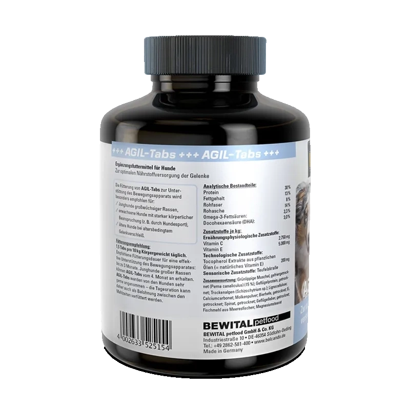 Zadbaj o zdrowie i komfort swojego pupila z witaminami dla psów Belcando Agil-Tabs.
