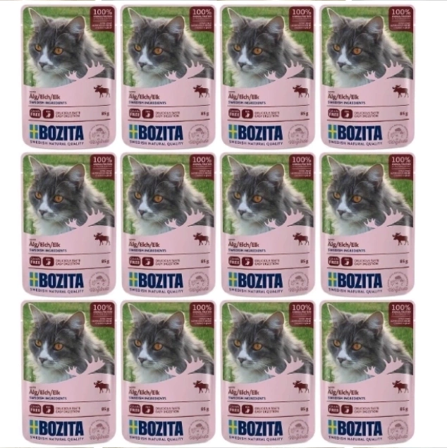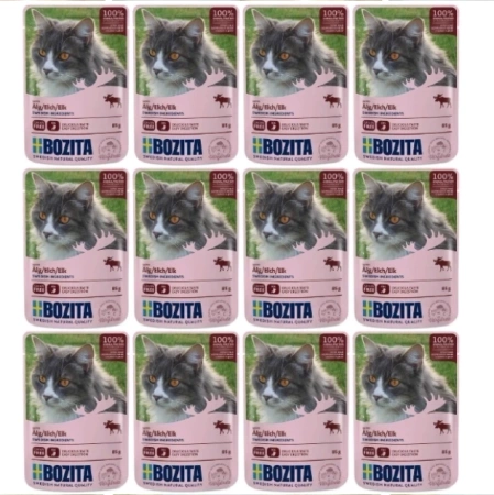 - Bozita Karma Dla Kota Łoś w Galaretce Saszetka 12x85g to zestaw mokrej karmy dla Twojego mruczka.