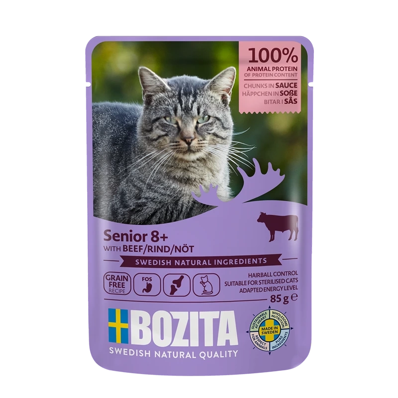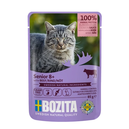 - Bozita Karma Mokra dla Kota Seniora Wołowina 85g pełnoporcjowa karma dla kotów od 8 roku życia.