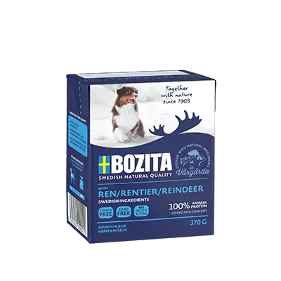 Karma została stworzona na bazie trzech mięs:zrenifera, z kurczaka i z wołowiny. Dzięki temu Twój pies otrzyma odpowiednią ilość niezbędnych składników odżywczych.