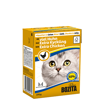 Kawałki w galaretce Bozita o smaku kurczaka o zwiększonej jego zawartości to smaczna mokra karma dla kotów oparta na surowcach jakości. Duża zawartość mięsa i mała ilość tłuszczu oraz naturalnie zbilansowana zawartość witamin i składników mineralnych.