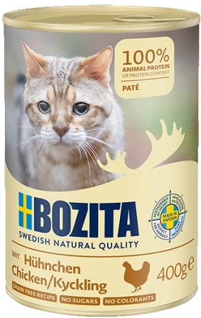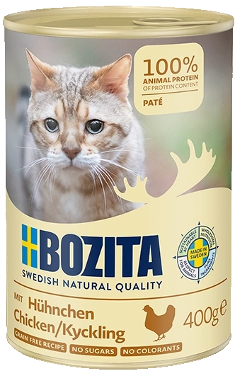 Mięsne kawałki Bozita z kurczakiem to smaczna mokra karma dla kotów oparta na surowcach jakości. Duża zawartość mięsa i mała ilość tłuszczu oraz naturalnie zbilansowana zawartość witamin i składników mineralnych