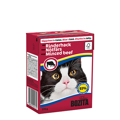 Kawałki w galaretce Bozita o smaku mielonej wołowiny to smaczna mokra karma dla kotów oparta na surowcach jakości. Duża zawartość mięsa i mała ilość tłuszczu oraz naturalnie zbilansowana zawartość witamin i składników mineralnych.