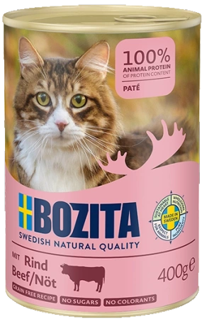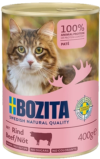 Mięsne kawałki Bozita o smaku wołowiny to smaczna mokra karma dla kotów oparta na surowcach jakości. Duża zawartość mięsa i mała ilość tłuszczu oraz naturalnie zbilansowana zawartość witamin i składników mineralnych