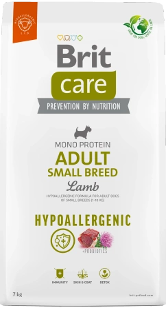Brit Care Hipoalergiczna Karma Dla Psa Jagnięcina 7kg to sucha karma dla dorosłych psów małych ras. Stworzona na bazie jednego źródła białka - jagnięciny. Polecana dla psiaków o wrażliwym układzie pokarmowym z tendencją do rozwoju alergii pokarmowych.