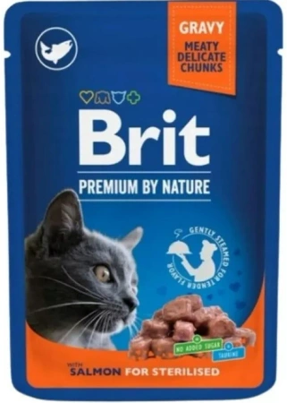 Brit Dla Kotów Sterylizowanych Z Łososiem W Sosie 100g o karma mokra dla kotów po zabiegu sterylizacji.