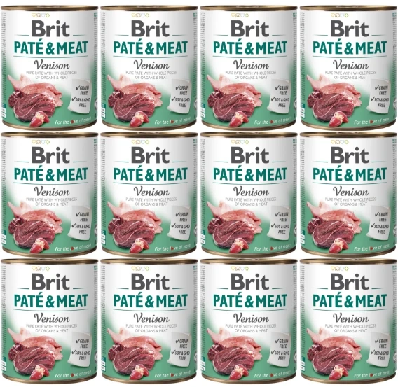 - Brit Pate Meat Karma Dla Psa Dziczyzna 12x800g to pożywna karma bez zbóż i konserwantów, z delikatną dziczyzną oraz kurczakiem.