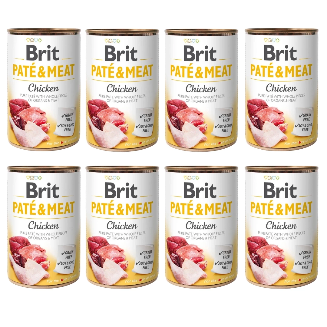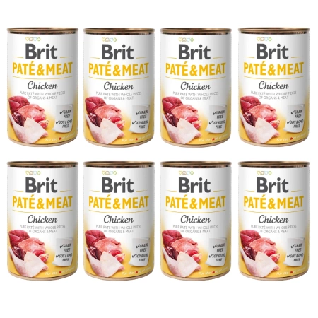 - Brit Pate Mokra Karma Dla Psa Kurczak 8x400g to zestaw 8 puszek po 400g karmy dla Twojego psiego przyjaciela, z dużą zawartością mięsa w składzie - z kurczakiem i wołowiną