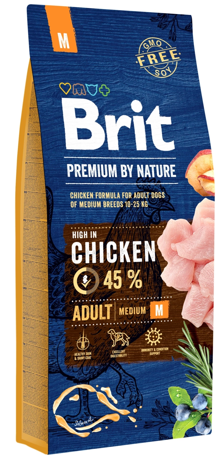 BRIT PREMIUM BY NATURE Z KURCZAKIEM DLA DOROSŁYCH PSÓW ŚREDNICH RAS (10-25KG)