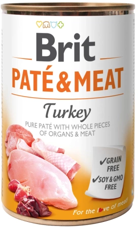 Brit Puszka 400g Pasztet i Mięso z Indyka to pełnowartościowa karma mokra dla psów.