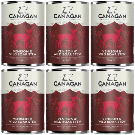 Canagan Mokra Karma dla Psa Puszka 6x400g Dziczyzna Gulasz to zestaw 6 puszek zbilansowanej karmy dla psów z dziczyzną i gulaszem z dzika. Prawdziwa mięsna uczta dla psów.
