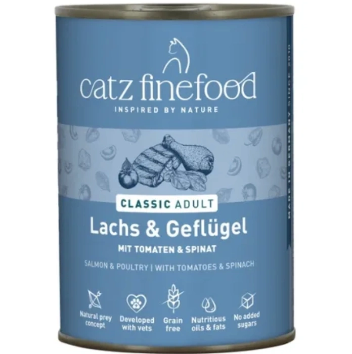 Catz Finefood Classic N.05 Łosoś Drób Puszka 400g to wartościowa mokra karma dla Twojego kota.