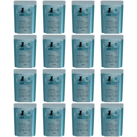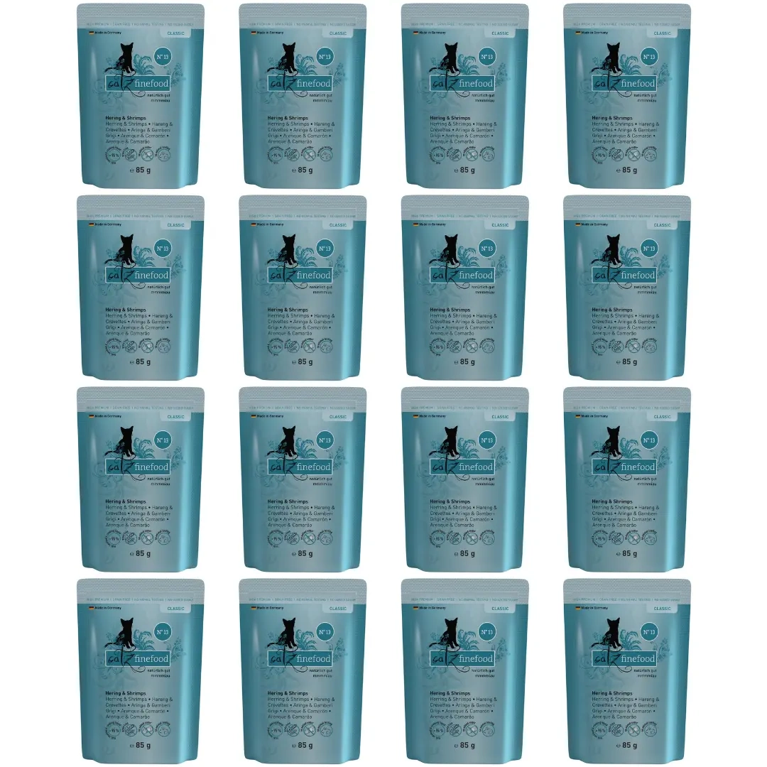 Catz Finefood Classic N.13 Śledź Krewetki Saszetka 16x85g to wartościowa mokra karma dla Twojego kota. Zestaw 16 saszetek po 85g.