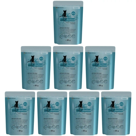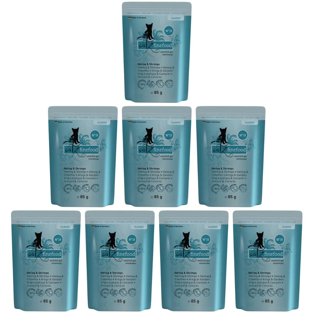 Catz Finefood Classic N.13 Śledź Krewetki Saszetka 8x85g to wartościowa mokra karma dla Twojego kota. Zestaw 8 saszetek po 85g.