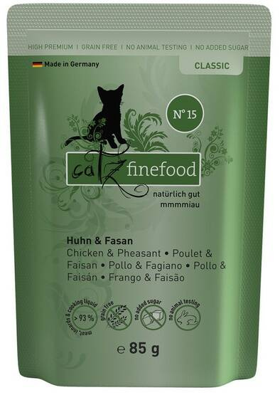 - Catz Finefood Classic N15 dla Kota Kurczak Bażant 200g mokra karma dla Twojego kota bez dodatku zbóż, bogata w świeże mięsko.
