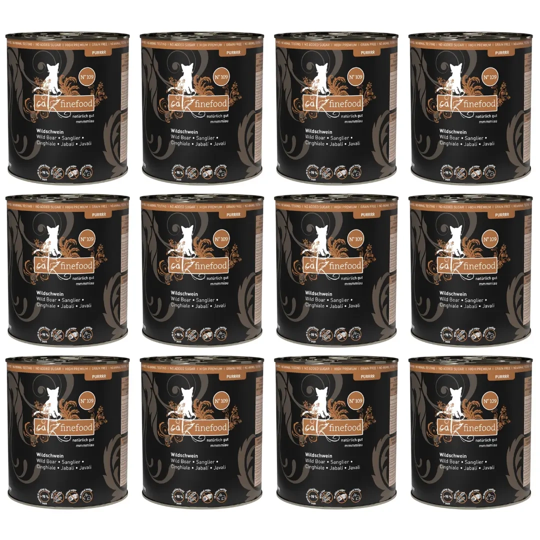 Catz Finefood Purrrr N.109 Mokra Karma dla Kota Dzik 12x800g to pożywienie dla kota zawierające jedno źródło białka: dzika. Zestaw 12 puszek po 800g.