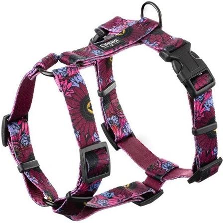 Szelki dla psa Chaba Lakota w kolorze bordowym, z motywem kwiatów.