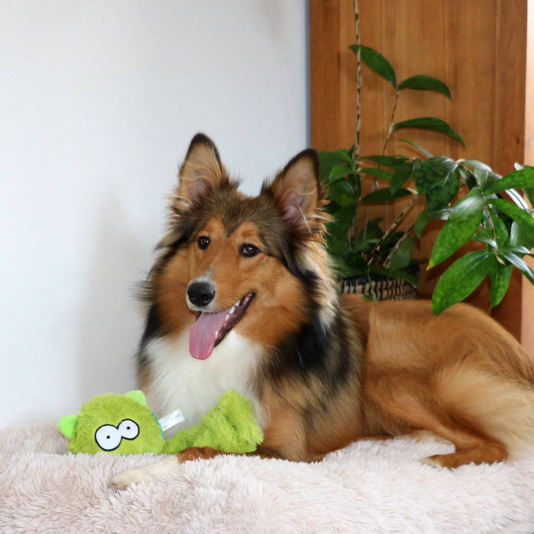 Pluszowa zabawka dla psa Coockoo Alvin to kolorowy stworek ze sprężynującym ogonem.