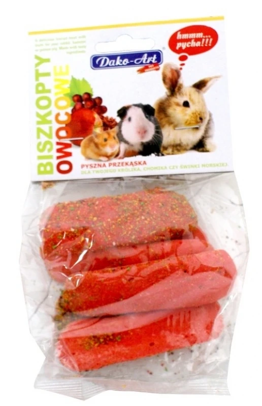 - Dako-Art Biszkopty Owocowe są smakowitym uzupełnieniem i urozmaiceniem diety dla gryzoni i królików.