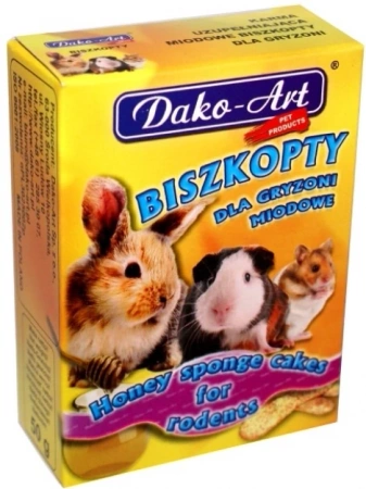 - Dako-Art Biszkopty Z Miodem dla Gryzoni Karton 50g to smaczna przekąska dla Twojego gryzonia, z miodem.