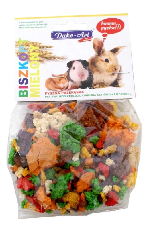 - Dako-Art Mielony Biszkopt Przysmak dla Gryzoni to pyszny smaczek dla Twojego gryzonia, z mielonym biszkoptem.