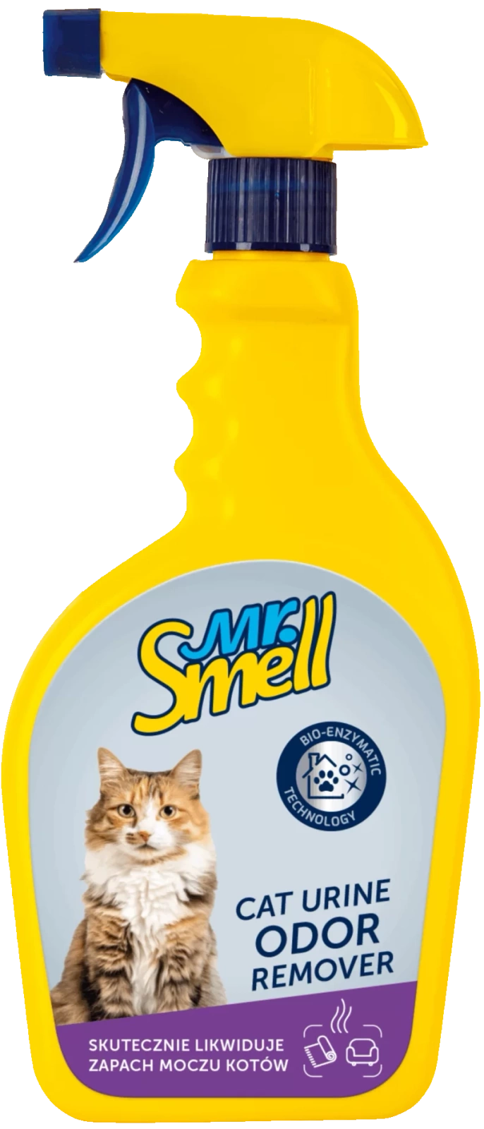 Neutralizator zapachu kota Mr. Smell Cat Urine Odor Remover to niezawodny środek do czyszczenia przestrzeni domowych zanieczyszczonych przez koty.