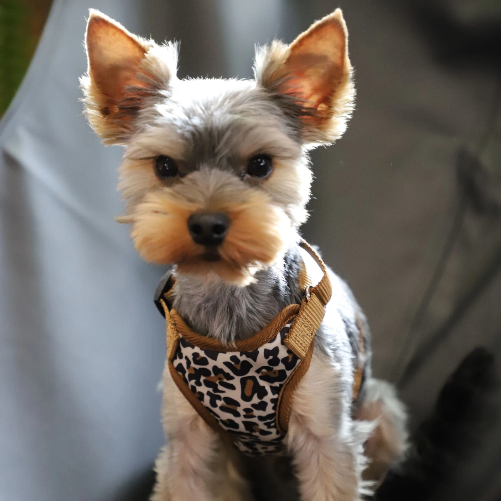 Szelki regulowane dla psów Dingo, z drapieżnym motywem lamparcich cętek.