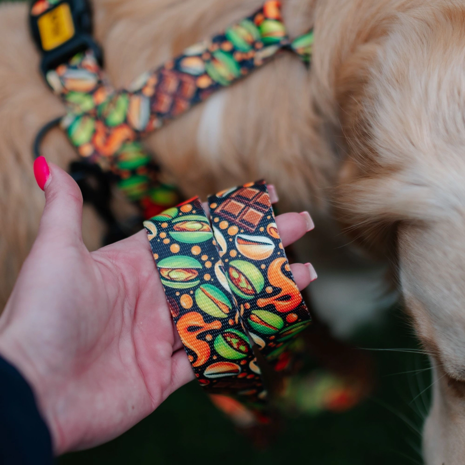 Smycz dla psa City DUBAI w modnym wzorze dubajskiej czekolady z pistacjami, przyciągnie wzrok i doda szyku Twojemu czworonogowi w czasie spacerów.