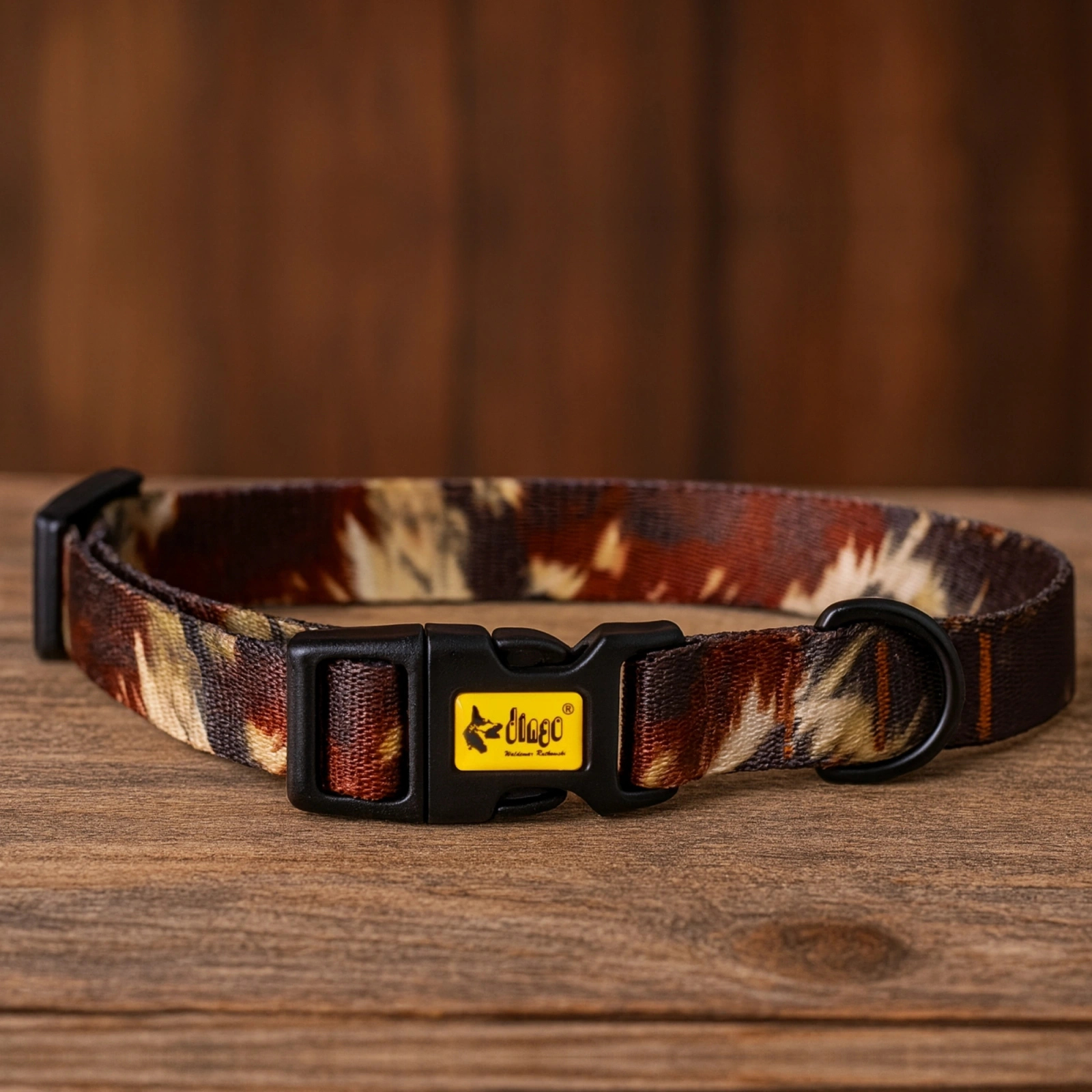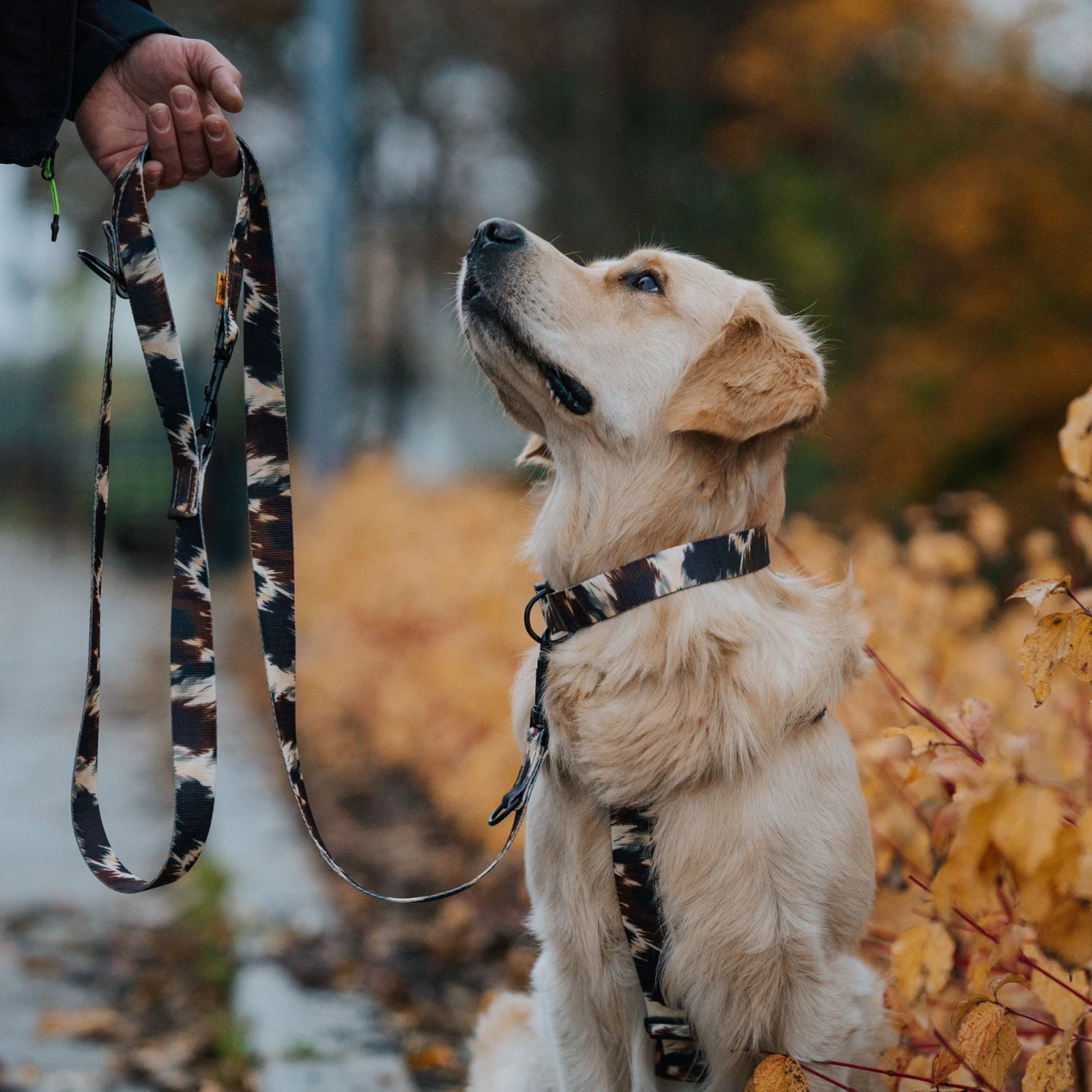 Obroża w odcieniach brązu i beżu, a jej wzór jest inspirowany naturalnym umaszczeniem dzikich mustangów z amerykańskich prerii. To nie tylko praktyczne akcesorium, ale także stylowy dodatek, który przyciąga wzrok.