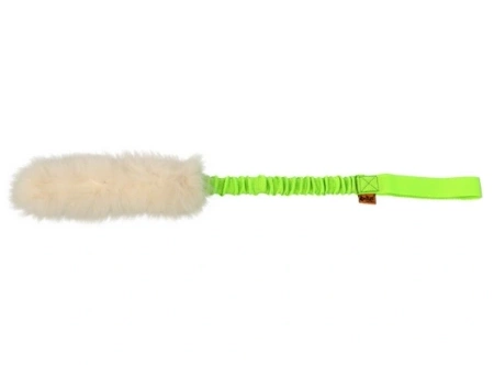 Dingo Szarpak dla Psa z Futrem Owczym Bungee Zielony to zabawka dla psów z naturalnym futrem owczym.