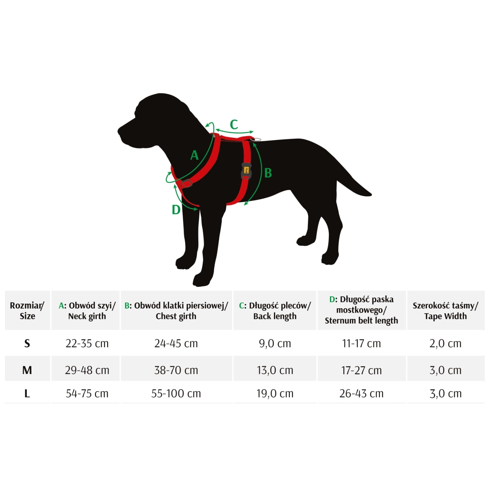 - obwód klatki piersiowej: 55-100cm