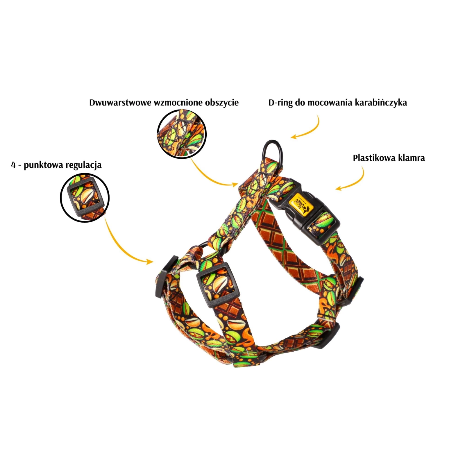 Szelki dla psa Dingo City DUBAI GUARD we wzorze dubajskiej czekolady, to luksusowe akcesorium dla Twojego czworonoga.