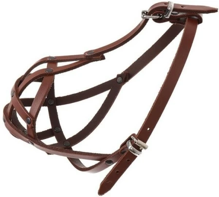 Skórzany kaganiec dla psa Dino w kolorze brązowym, sprawdzi się dla Twojego pupila na codziennych spacerach lub w transporcie publicznym.
