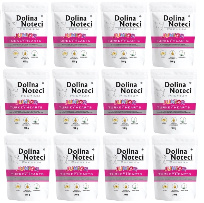 - Dolina Noteci Karma Dla Szczeniąt Serca Indyka 12x300g to pożywna karma dla młodego psa, z wysoką zawartością cennego białka zwierzęcego.
